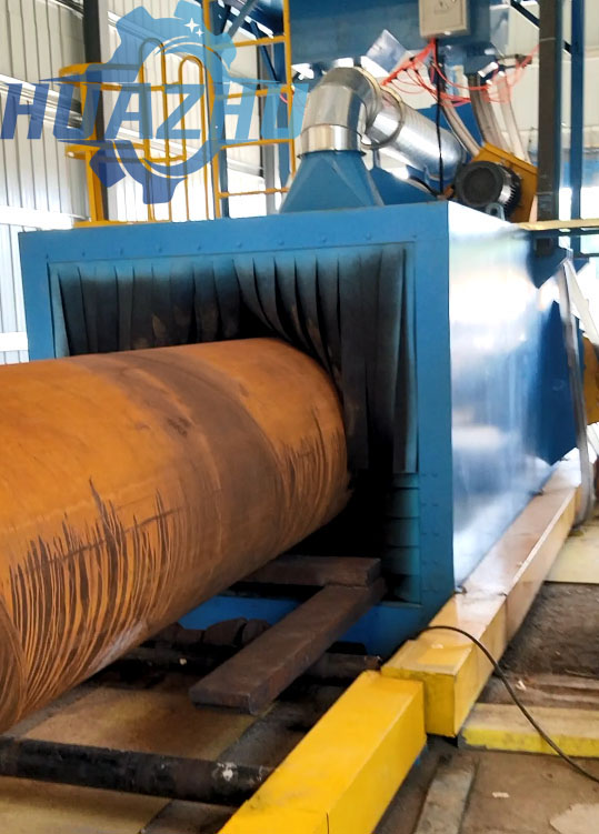 某鋼管公司購買了青島華鑄機(jī)械有限公司一臺鋼管外壁拋丸機(jī),設(shè)備現(xiàn)在安裝調(diào)試完畢,現(xiàn)小編將鋼管拋丸機(jī)現(xiàn)場的作業(yè)效果圖片分享給大家。